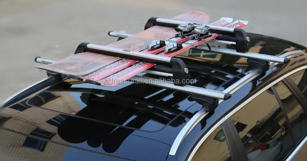 Recommended for cars with hitch receivers, rare alternative to roof-mounted ski racks, holds up to 6 pairs of skis and 4 boards, anti-theft protection, quick to install on most cars, 29-inch width. 33'' Aluminum Universal Ski Roof Rack Car Rack Carrier for Skis, Snowboards, Fishing Rods, Skateboards Easy to Use, Locking Fit Most Vehicles Equipped Crossbar (Black) 4.5 out of 5 stars Even better, you don't have to take the rack off in the summer because it can carry warm-weather items like fishing poles and boat paddles.